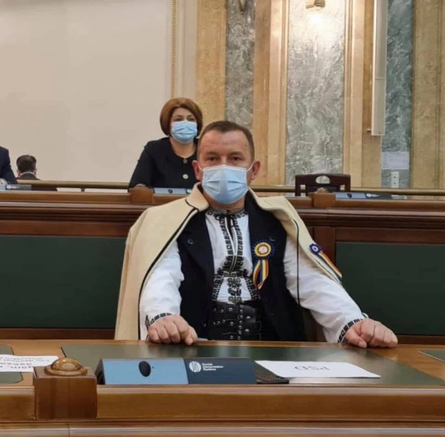 Mătieş a fost îmbrăcat în costum popular românesc.