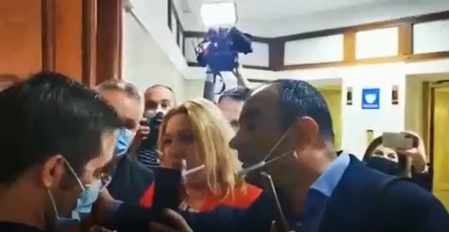 Ulterior, soţul senatoarei Şoşoacă s-a îndreptat cu ţipete către presă, foarte agresiv: „Bă, voi pe ăştia i-aţi întrebat dacă au legitimaţie sau nu, că pe mine m-aţi întrebat!”