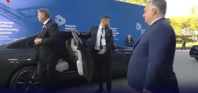 Totul a pornit de la faptul că, ajuns la summitul de la Budapesta, preşedintele României a coborât din maşină şi s-a întors cu spatele pentru a-şi aranja haina şi a vorbi cu staff-ul său, înainte de a-l saluta pe premierul Ungariei, Viktor Orban, care îl aştepta, conform protocolului. În calitate de gazdă a summitului Comunităţii Politice Europene (CPE), Viktor Orban a întâmpinat și a salutat joi dimineața peste 50 de delegaţii la Arena Puskás, făcând şi fotografii oficiale cu invitații.