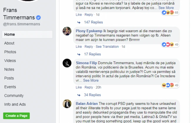 Mesajele publicate de internauţi pe pagina lui Frans Timmermans sunt similare cu cele din declaraţiile date ieri de premierul Viorica Dăncilă, de ministrul Justiţiei, Tudorel Toader, dar şi de alţi social-democraţi în studiourile TV.