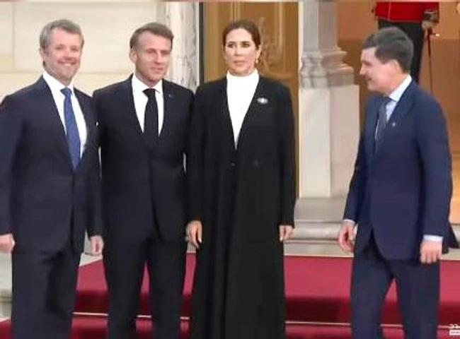 Președintele României așteaptă ca oficialul francez Emmanuel Macron să schimbe și saluturile. Ulterior, Dan ezită să se apropie pentru realizarea fotografiei de grup, dar este invitat cu politețe de regina Maria a Danemarcei.