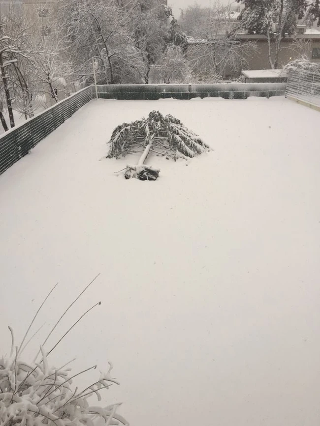 „Îmi pare tare rău. Viscolul a doborât bradul pe care îl aveam în curte. Voi planta mai mulţi“, a scris Traian B[sescu, pe pagina sa de Facebook.