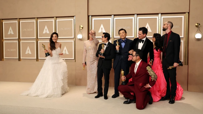 „Everything Everywhere All at Once“ a câștigat nu mai puțin de șapte trofee la gala Oscar 2023, inclusiv pentru Cel mai bun film, Cea mai bună actriță în rol principal (Michelle Yeoh) și Cea mai bună regie (Daniel Kwan și Daniel Scheinert, cunoscuți sub numele „Daniels“).