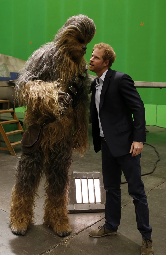Chewbacca îi şopteşte ceva prinţului Harry FOTO Guliver/Getty Images