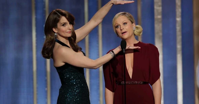 Tina Fey şi Amy Poehler, care au lucrat mulţi ani împreună la emisiunea de satiră "Saturday Night Live" înainte de a-şi construi cariere solo de succes - prima în serialul "30 Rock", iar cea de-a doua în "Parks and Recreation" -, nu au adoptat un stil atât de critic precum Ricky Gervais, însă prestaţia lor din ianuarie a sedus spectatorii.
