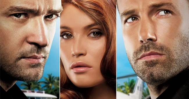 În „Joc riscant”, povestea e cam ţesută cu aţă albă, iar evoluţia dramatică a personajelor nu e deloc surprinzătoare, toată lumea din sală ştie ce se va întâmpla. Pe scurt, Richie Furst (Justin Timberlake) este masterand la Princeton şi mai recrutează clienţi pentru jocuri online. Are nevoie de bani pentru taxele şcolare. Richie fusese broker pe Wall Street, înainte de 2008, iar tatăl era un cartofor cunoscut, cu datorii la toate casinourile din Las Vegas. Eroul nostru vrea să-şi depăşească problemele din trecut, dar taxele la Princeton sunt mari, aşa că decide să-şi rişte toţi banii într-un singur joc de poker online. Pierde tot şi pleacă în Costa Rica, acolo unde e sediul firmei lui Ivan Block (Ben Affleck), care e responsabilă de înşelătorie. Block îşi cere scuze pentru greşeala unui angajat, returnează banii şi-l lămureşte pe tânărul jucător să lucreze pentru el.Richie începe să câştige foarte mulţi bani, îşi cheamă vreo doi prieteni matematicieni care să facă programare şi se insatalează în afacere. Îi cade cu tronc asociata lui Block, Rebecca (Gemma Arterton). Toate bune şi frumoase, pline de culoarea tropicală din Costa Rica, ca un poster turistic. Fostul student este acum „un tânăr de succes”, cu toate accesoriile necesare, de la haine elegante la maşini luxoase, de la grămezi de bani la iubita cea frumoasă. Gemma Arterton are mai mult un rol decorativ în poveste.
