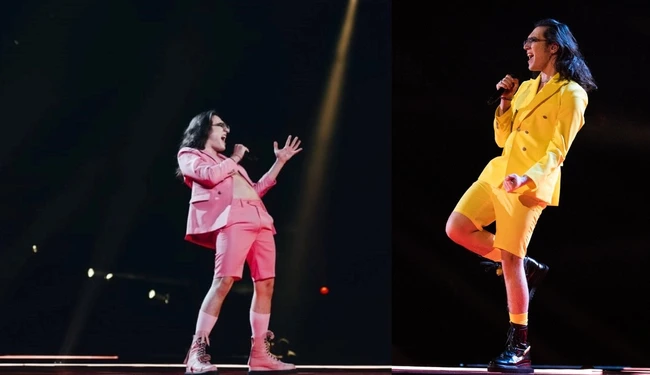 Foto Eurovision 2023: a doua repetiție a României. Theodor Andrei a schimbat costumul galben cu unul roz bonbon FOTO