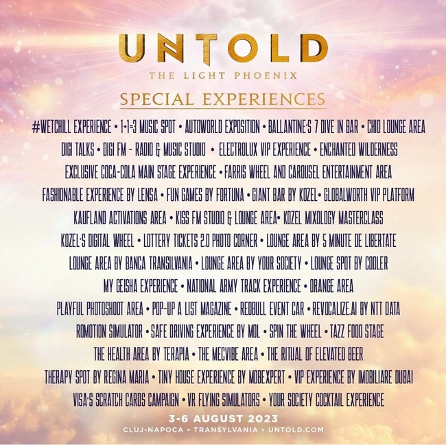 Călătoriile în acest univers feeric de 4 zile și 4 nopți încep cu îndemnul prietenilor de a experimenta, de a simți și de a trăi. Organizatorii numesc acest sentiment: UNTOLD.