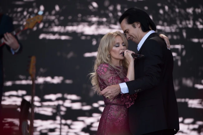 Artista pop i-a avut invitaţi în timpul recitalului pe Nick Cave şi pe Chris Martin. Cu lacrimi în ochi, Kylie Minogue a declarat: „În 2005, trebuia să fiu aici, pe scena asta, dar circumstanţele au făcut în aşa fel să nu ajung, dar am urmărit din Australia. Mi-aş fi dorit ca lucrurile să stea altfel, dar viaţa este ceea ce este, nu? Suntem împreună aici, acum...“