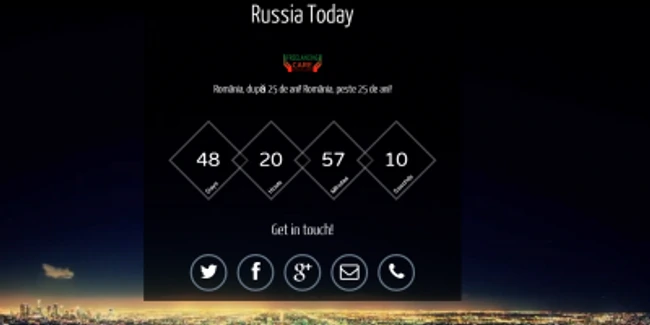 Postul de televiziune Russia Today va emite în limba română în 19 zile Postul de televiziune Russia Today (RT) urmează să fie lansat în limba română, în acest sens existând deja o platformă care anunţă timpul rămas până la debut. Iniţiativa i-a aparţinut lui Dan Muşetoiu, fostul director de programe al postului TV The Money Channel, care a confirmat că intenţionează să lanseze un produs editorial cu acest nume.
