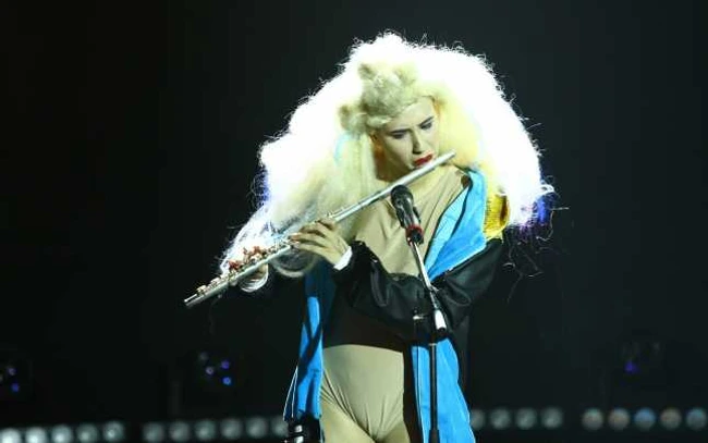 Călina Epuran, imitând-o pe Sia FOTO Antena 1