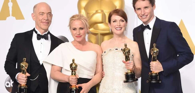 Într-adevăr, multe dintre statuetele din acest an au fost acordate favoriţilor, inclusiv cele la principalele categorii de interpretare, care au mers la Eddie Redmayne, pentru interpretarea celebrului astrofizician Ethan Hawking din „The Theory of Everything/ Teoria întregului“, şi Julianne Moore, pentru rolul unei profesoare care luptă cu primele simptome ale maladiei Alzheimer, în „Still Alice“. De asemenea, „Birdman/ Omul Pasăre“ l-a învins pe „Boyhood/ 12 ani de copilărie“, câştigând atât titlul de Cel mai bun film, cât şi pe cel de Cel mai bun regizor, pentru cineastul mexican Alejandro González Iñárritu.