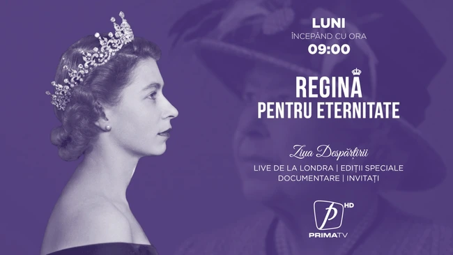 0Prima TV aduce un omagiu celui mai longeviv monarh al Marii Britanii, Regina Elisabeta a II-a, a cărei dispariție a marcat o lume întreagă. Luni, 19 septembrie, începând de dimineață, postul de televiziune din Grupul Clever va difuza un program special, cu numele Regină pentru eternitate, care cuprinde documentare despre viața Reginei Elisabeta a-II-a, corespondențe speciale de la Londra, transmisiuni în direct, mărturii ale celor care au cunoscut-o sau au fost marcați de simpla ei prezență.