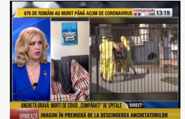 „Mergem acum la colega mea Laura Duţă care a venit cu dezvăluiri incendiare în exclusivitate despre banii pe care rudele morţilor cu Covid i-ar fi primit de la spitale celebre ca să scrie că victimele aveau noul coronavirus“