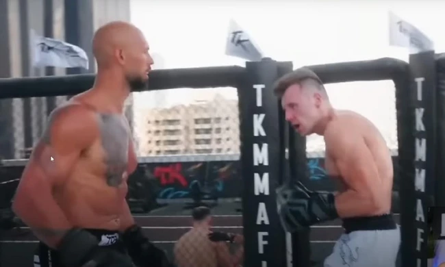 Imaginile au fost filmate la etajul nouă al sălii de sport Shatha Tower TKMMAFIT din Media City, EAU, şi îl înfăţisează pe controversatul influencer luptându-se cu mai mulți adversari diferiți într-o cușcă MMA, potrivit DailyStar. Primul său adversar din videoclip pare să fie bătut destul de tare și plin de sânge.