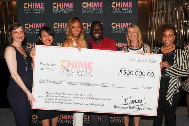 0Beyonce Knowles a donat 500.000 de dolari fundaţiei caritabile „Chime For Change“, înfiinţată anul trecut de compania Gucci, cu scopul de a ajuta fetele şi femeile din ţările foarte sărace ale lumii, relatează site-ul oficial al organizaţiei, chimeforchange.com