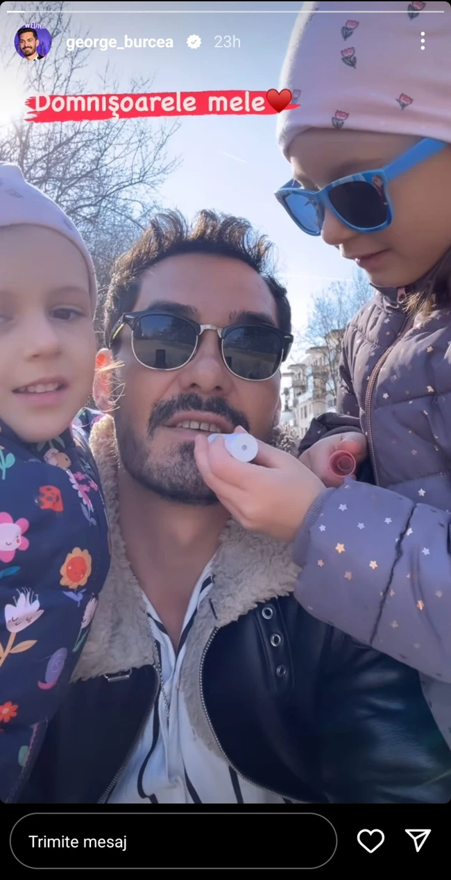 Recent, pe pagina acestuia de Instagram, în secțiunea InstaStory, George Burcea a distribuit noi imagini cu fetițele sale, pe care le-a revăzut curând, după ce s-a întors în țară, pentru ... anumite proceduri estetice, așa cum le povestea fanilor săi.