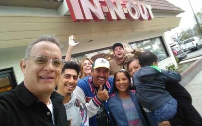 Fotografiile cu Hanks şi Wilson, în care cei doi iau masa alături de ceilalţi clienţi din localul din reţeaua In-N-Out Burger, dar şi cele în care acesta s-a fotografiat cu fanii au fost distribuite în mediul online.