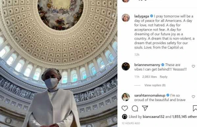 Invitate să cânte la ceremonia de învestire a lui Joe Biden, Lady Gaga şi Jennifer Lopez au transmis mai multe imagini şi mesaje de pace. Lady Gaga a publicat marţi seară, pe Instagram, o fotografie în care apare în Capitoliu, alături de textul: „Mă rog ca mâine (miercuri, n.r.) să fie o zi de pace pentru toţi americanii. O zi de iubire, şi nu de ură. O zi pentru acceptare, şi nu teamă. O zi pentru a visa despre viitoarea noastră bucurie ca ţară. Un vis care nu este violent, un vis care aduce siguranţă sufletelor noastre. Cu dragoste, de la Capitoliu”, scrie news.ro.