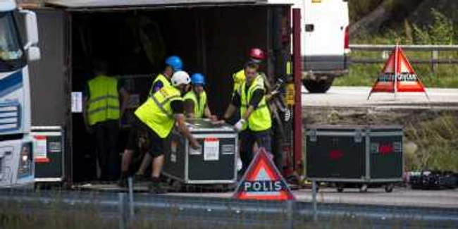 Un camion ce transporta sistemul de sonorizare pentru un concert pe care Madonna urma să-l susțină în Suedia s-a răsturnat pe o autostradă, iar accidentul a blocat circulația.