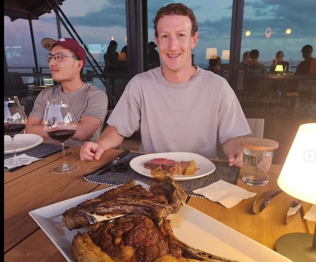 Miliardarul Meta a postat miercuri o fotografie în care apare mâncând o friptură - în sânge, fără garnituri - de la ferma sa Ko'olau, un complex de 1.400 de acri din Kauai, cea mai veche insulă din Hawaii.