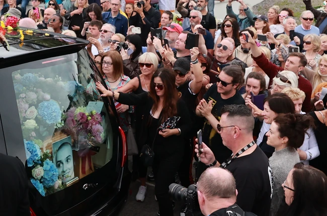 Imagini emoționante îi înfățișează pe admiratorii cântăreței – de la pensionari la copii cu jucării de pluș în brațe – adunați pe străzile orașului Bray. Mii de persoane au venit să-i aducă un ultim omagiu artistei, care a încetat din viață la 56 de ani, pe 26 iulie 2023, a relatat The Guardian. Printre cei care au participat la ceremonie au fost Bono, solistul trupei U2, și muzicianul britanic Bob Geldoff, potrivit The Irish Times.