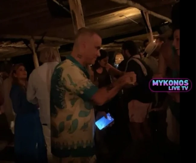 El a fost surprins în imaginile Mykonos Live TV.