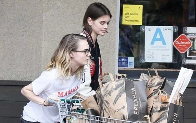 Modelul Cara Delevingne, în vârstă de 27 de ani, a mers la cumpărături alături de iubita ei, actriţa Ashley Benson (30 de ani), şi prietenii lor, modelul american Kaia Gerber (18 ani) şi actorul Tommy Dorfman (27 de ani. Toţi cei patru tineri au împins cărucioarele purtând mănuşi de unică folosinţă.