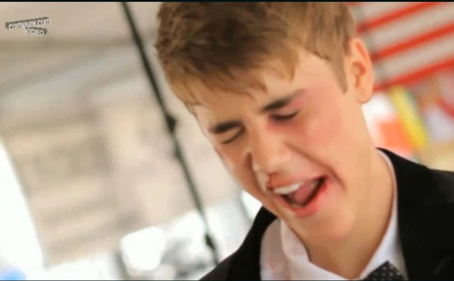 Faţa lui este acoperită de vânătăi iar îmbrăcămintea îi este ruptă. Bieber scuipă sânge după loviturile primite, dar este gata să se întoarcă la luptă. În ajutorul lui, pentru a-l îngriji, sare una dintre fetele care anunţă rundele meciului de box.