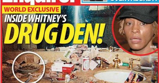 O baie murdară, plină de medicamente şi probe evidente că proprietara casei consuma droguri (linguri cu urme de cocaină şi cutii de tranchilizante) au şocat opinia publică. Tina Brown, prietena, cumnata şi fosta partenerã de droguri se temea atunci că Whitney ar putea muri din cauza unei supradoze.