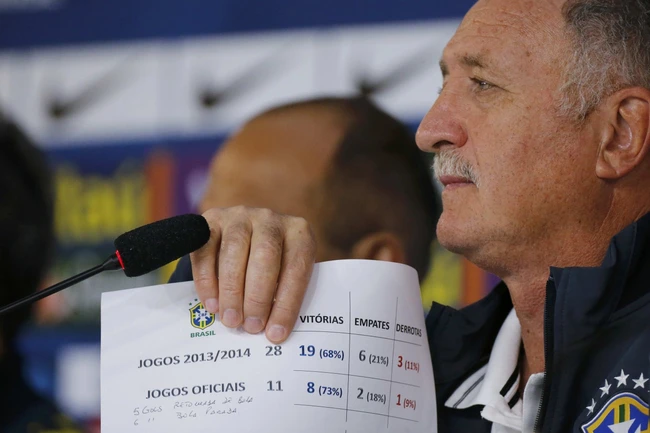 În apărarea sa, antrenorul de 65 de ani s-a prezentat la o conferinţa de presă cu o hârtie pe care erau notate rezultatele obţinute în ultimii doi ani de Brazilia.