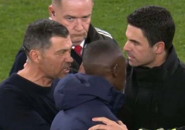 Imediat după loteria de la punctul de 11 metri, cei doi antrenori au fost surprinşi de camere într-o discuţie aprinsă, iar Conceicao, vizibil furios, i-a șoptit ceva lui Arteta.