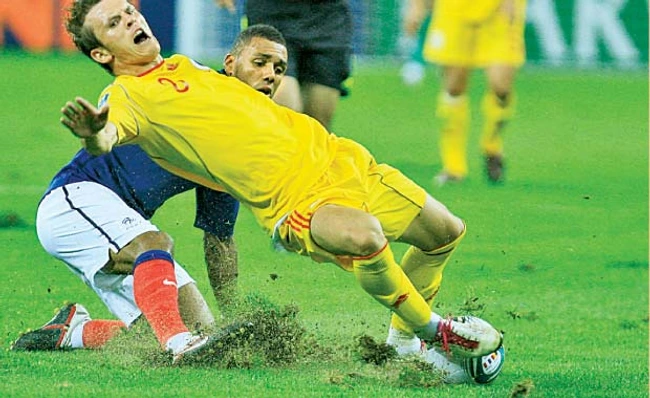 Dezamăgirea. Ceea ce s-a întâmplat la România - Franţa cu suprafaţa de joc poate fi cu greu descris. Brazdele de teren zburau în toate părţile, iar fotbaliştii călcau pe gazon ca în muşuroaiele de cârtiţe. Presa străină a râs de noi, iar UEFA a cerut urgent schimbarea gazonului montat de firma lui Adrian Oprişan, responsabilă şi pentru „plaja" de la meciul cu Danemarca, din 2003.