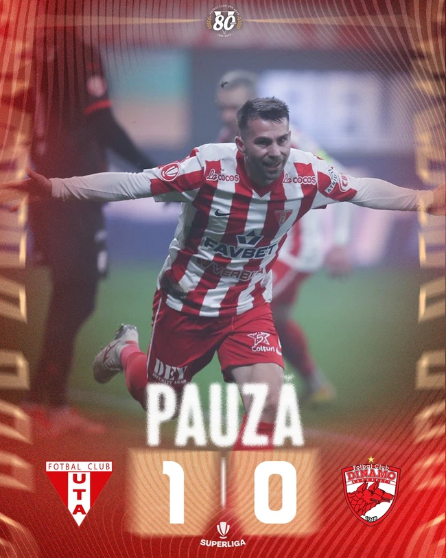 0UTA a învins-o pe Dinamo București cu scorul de 2-0 (1-0), sâmbătă seara, la Arad, într-un meci din etapa a 21-a a Superligii de fotbal.