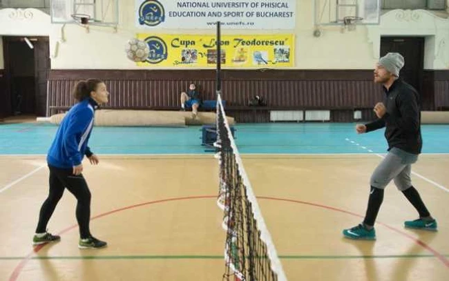 Multipla campioană mondială şi cântăreţul Peter Pop au jucat o partidă demonstrativă de fotbal tenis la sala de la UNEFS, după care au fredonat împreună câteva versuri din piesa ”Umbre”, ultimul single lansat de artist.