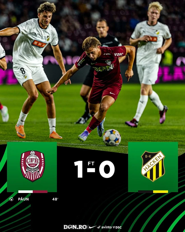 CFR Cluj s-a impus cu 1-0, dar mai departe, în grupa Conference League, merge Hacken, cu 7-3 scor la general. Ardelenii rămân să se concentreze numai pe campionat, încercând duminică, contra lui FCSB, să iasă din subsolul clasamentului.