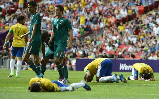 Pentru Brazilia toate au fost bune şi frumoase până în finală, unde a dat de Mexic. Aztecii, cu zece jucători în lot, care sunt acum în Brazilia, au câştigat cu 2-1, graţie reuşitelor lui Oribe Peralta, cel care a marcat golul mexicanilor şi în meciul de vineri, contra Camerunului. Portarul Corona, fundaşii Reyes, Moreno şi Salcido, mijlocaşii Herrera, Ponce, Aquino şi Fabian, plus atacantul vedetă Giovani Dos Santos sunt campionii olimpici de care Brazilia se va lovi din nou diseară.