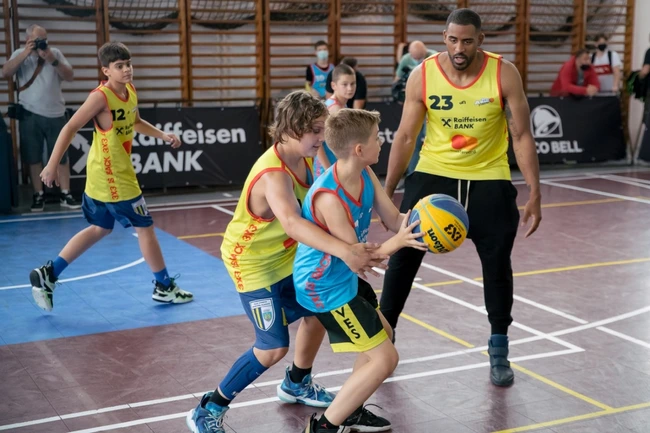 Benny le-a făcut o surpriză puştilor de la categoria sub 12 ani şi a venit alături de ei pe teren, demonstrând că baschetul jucat în curtea liceului nu se uită niciodată.