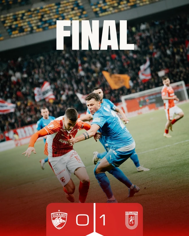 0Dinamo avea șansa de a se apropia la un singur punct de Universitatea Craiova, însă a pierdut aseară pe Arena Națională și a ieșit practic din lupta pentru titlu. Deși au jucat o repriză întreagă cu un om în plus în confruntarea cu oltenii, bucureștenii au înregistrat a 5-a înfrângere consecutivă în Superliga, într-un meci presărat cu durități și scandaluri.
