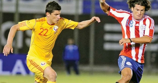 În atac, doar Torje încearcă să facă ceva. Micuţul mijlocaş dă din coate, se zbate, dar când ajunge să-i paseze decisiv lui Tănase, trimite total imprecis. Alexe vârf împins pare o domnişoară printre puternicii stoperi paraguayeni, în timp ce Zicu parcă e chiar un jucător de la o echipă retrogradată. Tănase e Tănase, aşa că singura ocazie a primei reprize îi aparţine lui Giurgiu, mijlocaşul Oţelului întinzându-l cu un lob din careu pe portarul Villar.