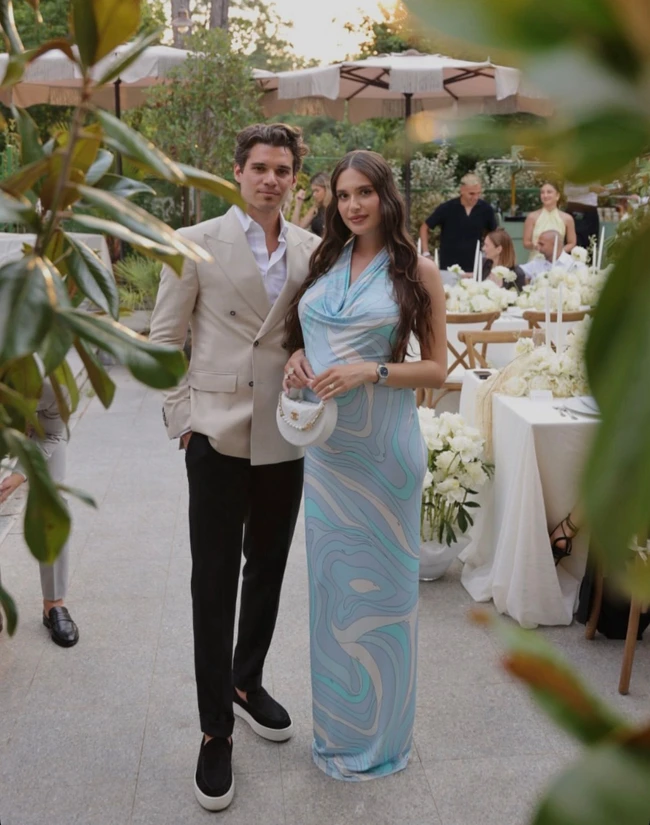 Evenimentul s-a desfășurat în aer liber, iar decorul a fost unul select, luxos și modern. Apariția Elenei Hagi a fost de neratat, astfel că tânăra a atras toate privirile cu o rochie mulată de un bleu deschis.