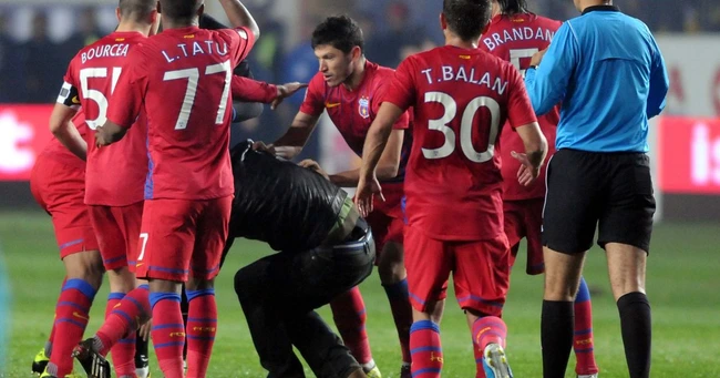 0Fundaşul echipei Steaua, George Galamaz, a fost adus cu ambulanţa de la Ploieşti la Spitalul Militar din Capitală, după ce a fost lovit de un suporter la meciul cu Petrolul, din etapa a XII-a a Ligii I. Imediat după sosirea ambulanţei cu Galamaz, la spital au sosit şi preşedintele CA al FC Steaua Valeriu Argăseală şi directorul sportiv Narcis Răducan.