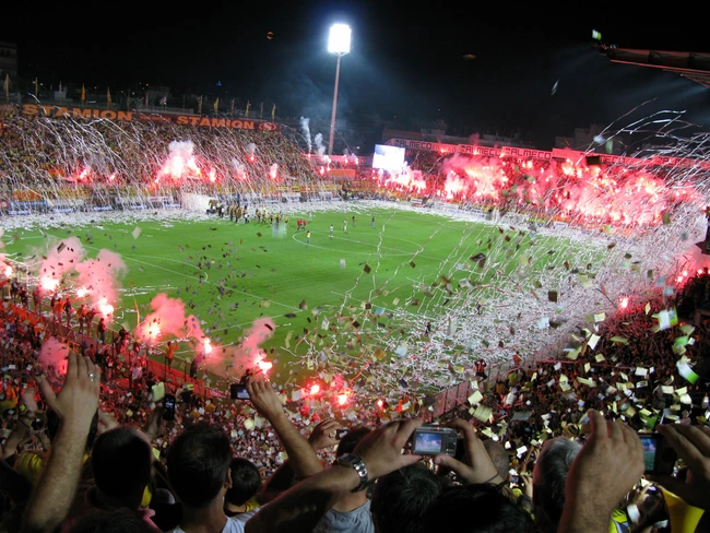 0După ce suporterii Petrolului au fost prinși de greci la graniță cu câteva ”arme albe” - niște bricege cu pe care aceștia au declarat că le aveau pentru a lua masa - roata s-a întors și acum fanii eleni au probleme cu oamenii legii din România.
