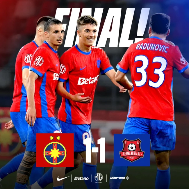 Alexandru Stoian, intrat pe teren în min. 83, i-a salvat pe roș-albaștri de la înfrângere, marcând din plonjon la centrarea lui Risto Radunovic (90+3). S-a încheiat 1-1, un prim pas greșit al campioanei în acest sezon, care a câștigat Supercupa (2-1 cu CFR Cluj) și prima manșă a turului I preliminar din Liga Campionilor, 3-1 cu Inter-ul andorrez.