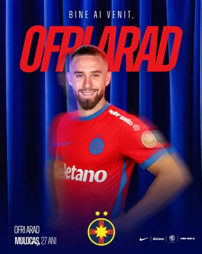 0FCSB, aflată într-o goană disperată pentru a prinde un loc de play-off, a anunțat azi în mod oficial al doilea transfer al iernii. Este vorba despre Ofri Arad, mijlocaș defensiv în vârstă de 27 de ani, jucător care a semnat contractul și a devenit component al lotului campioanei României.