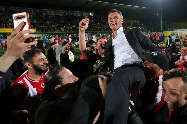 După un an început dezastruos în Liga a 2-a, ”alb-roșii” au realizat ceea ce părea imposibil: revenirea în Superliga. Iar sâmbătă, când Dinamo a promovat, a început sărbătoarea: fanii au invadat gazonul din Mioveni și au făcut turul de onoare alături de jucători, după care traseul Pitești - București a fost făcut cu dese opriri, stropite din belșug cu bere și șampanie și cântece de bucurie. Multe dintre ele îndreptate împotriva rivalei CSA Steaua, care a rămas în Liga a 2-a, neavând drept de a evolua în primul eșalon.