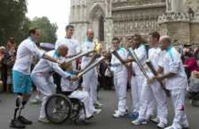 Flacăra Jocurilor Paralimpice este purtată spre Stadionul Olimpic din Londra