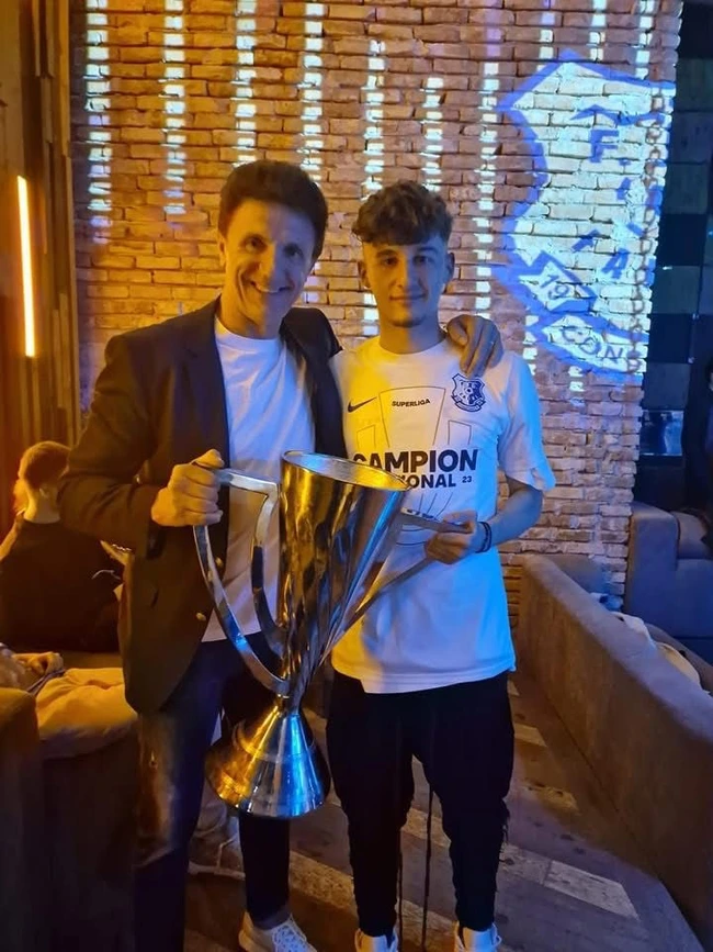 10. Emil și Andrei Dăncuș: Emil Dăncuș (51 de ani) a jucat pentru formații precum Gloria Bistrița, CS Astra Ploiești sau Gaz Metan Mediaș. Fiul său, Andrei (16 ani) a debutat, de curând, la FCSB, într-un meci amical desfășurat în cantonamentul de vară.