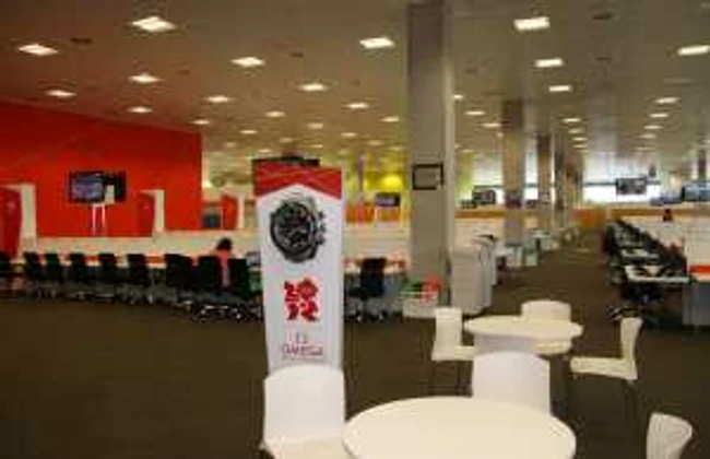 Acesta are 31.000 metri pătraţi, pe patru etaje, şi oferă condiţii dintre cele mai bune jurnaliştilor acreditaţi. Pe lângă pupitrele de lucru, monitoarele tv , stativele unde vor fi aşezate fişele cu sportivii aflaţi în concurs şi rezultatele, ziariştii vor avea la dispoziţie şi alte facilităţi. Ei vor avea acces într-o bibliotecă, fireşte cu tematică sportivă, în sălile rezervate conferinţelor de presă, dar şi într-o sală de masaj, o frizerie şi o cameră de rugăciune.