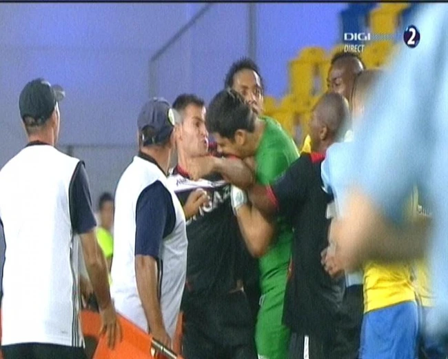 După scene demne de junglă, arbitrul Sebastian Colţescu i-a eliminat pe Bawab şi pe Bornescu. Mai erau 30 de minute de jucat, iar Petrolul avea 9 jucători şi Gaz Metan 10.